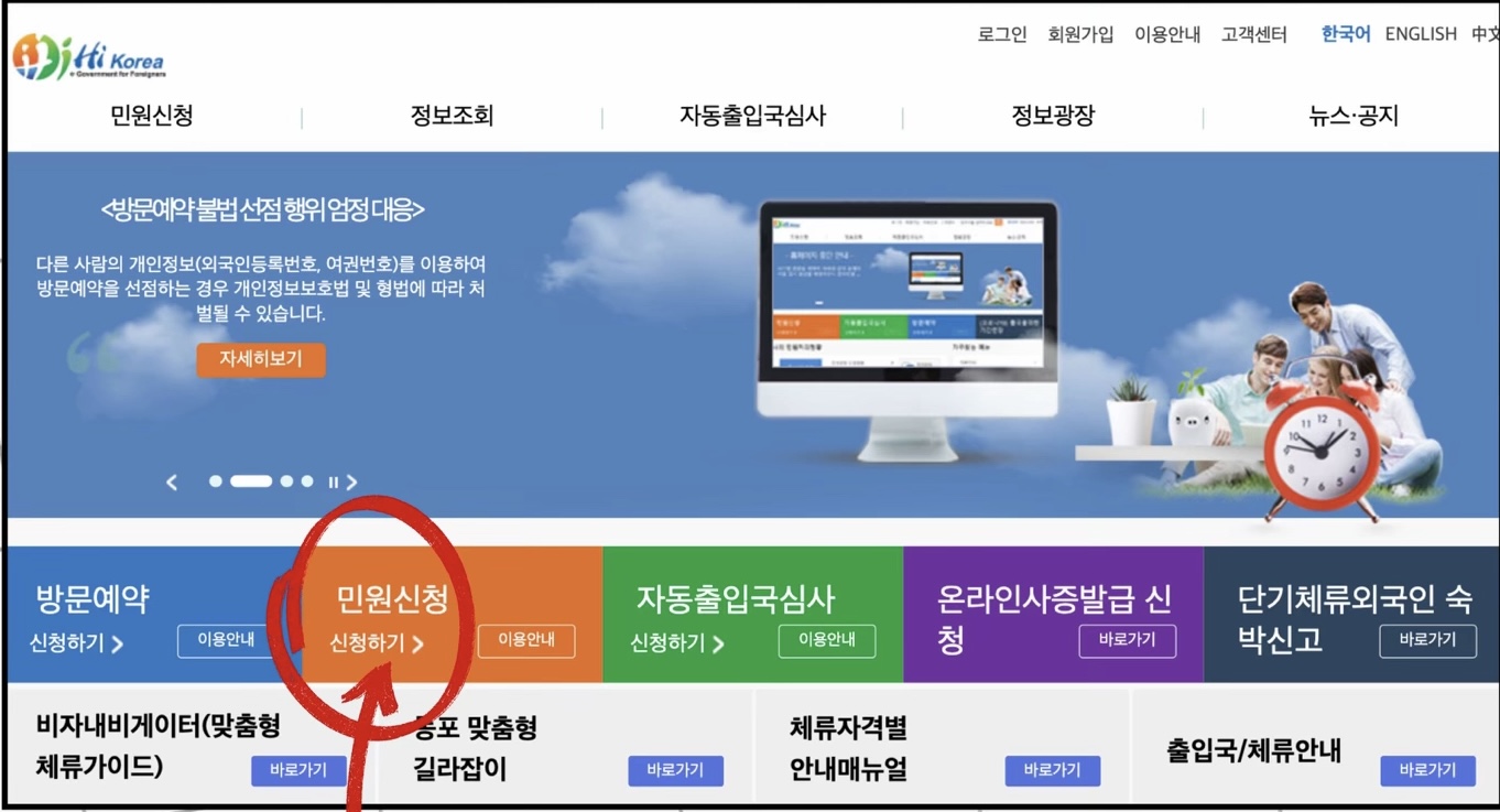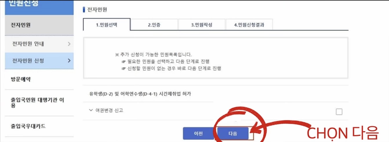 Chọn 민원신청