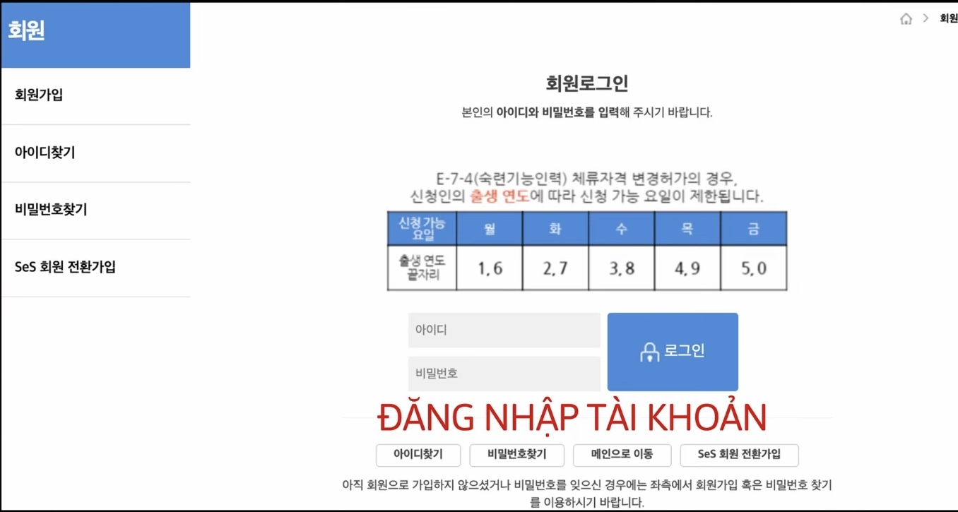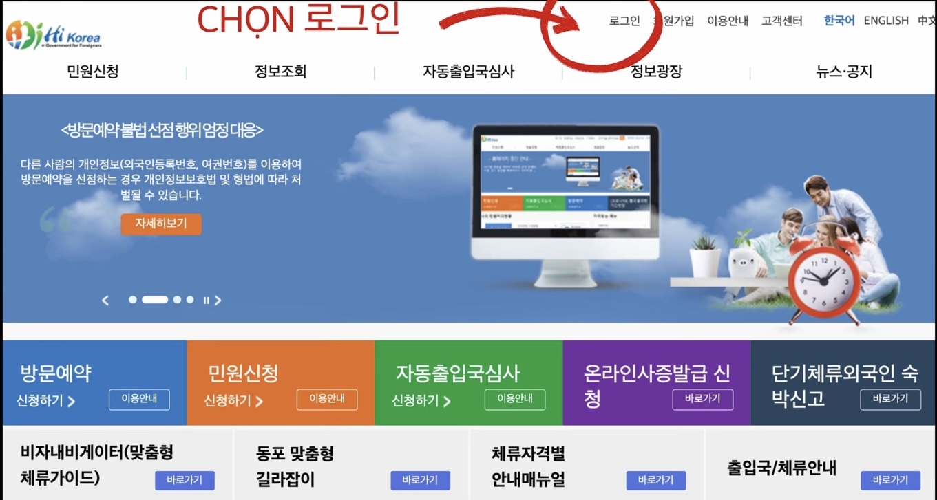 Sau khi chuẩn bị xong tất cả các giấy tờ, các bạn chụp hoặc scan lại. Truy cập trang web HiKorea và đăng nhập: