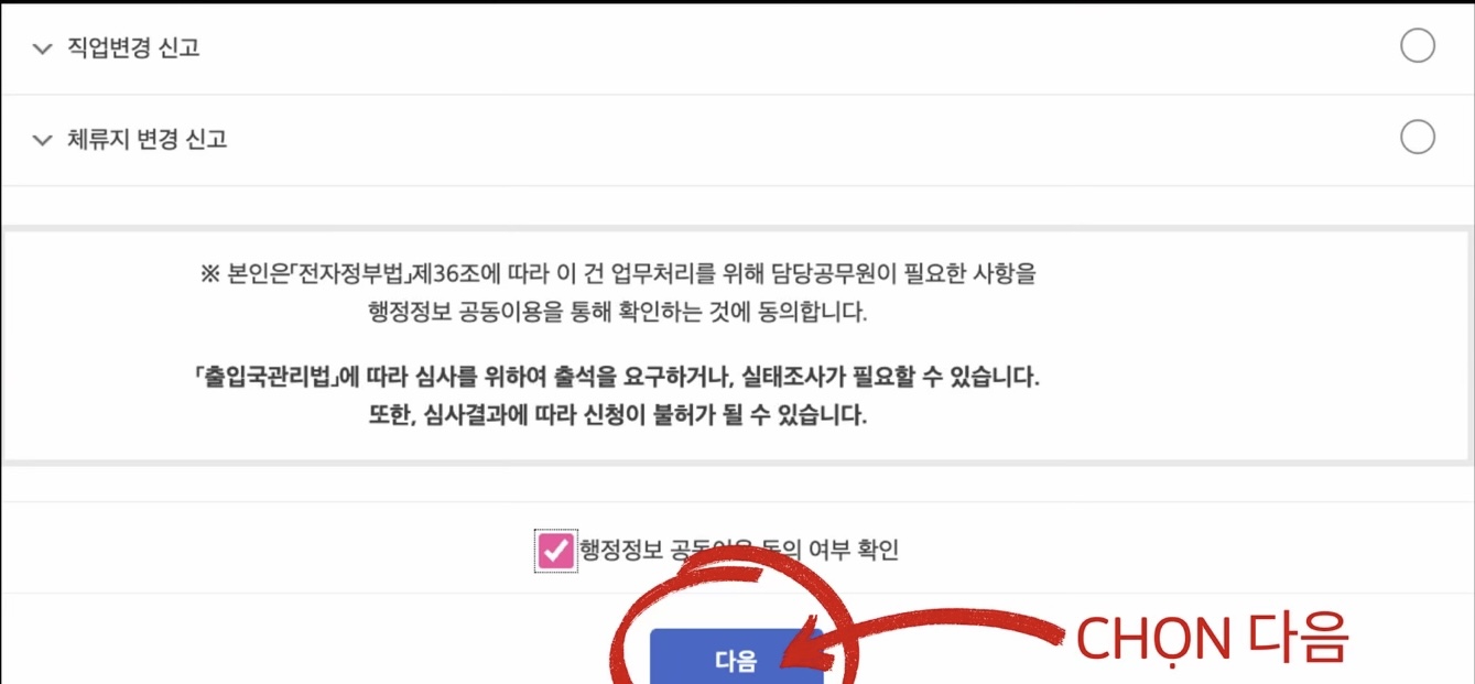 Đoạn này không cần chọn gì khác chỉ cần bấm luôn 다음