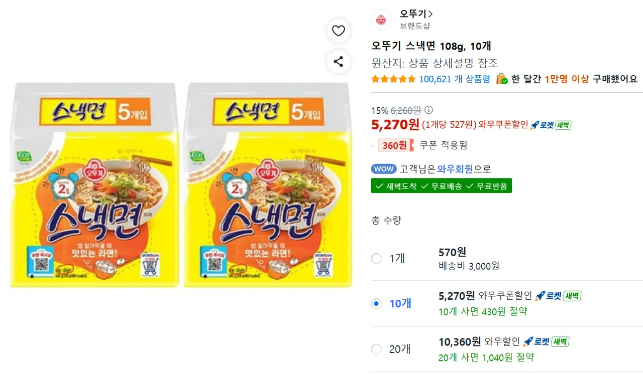10 túi mì ăn nhẹ Ottogi