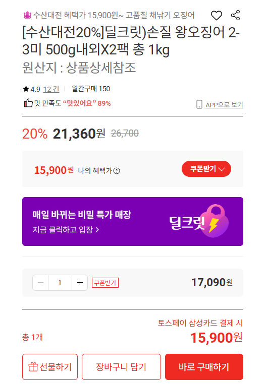![Ảnh chụp màn hình 2026-02-20 230204.png [Lotte On] Mực vua đã chuẩn bị sẵn 2-3 miếng, khoảng 500g x 2 gói tổng cộng 1kg (15.900 won) (miễn phí)](https://image.hotdeal.zip/images/2026/02/20/d46e62e34ea854f54e461218de84d2c7.webp)