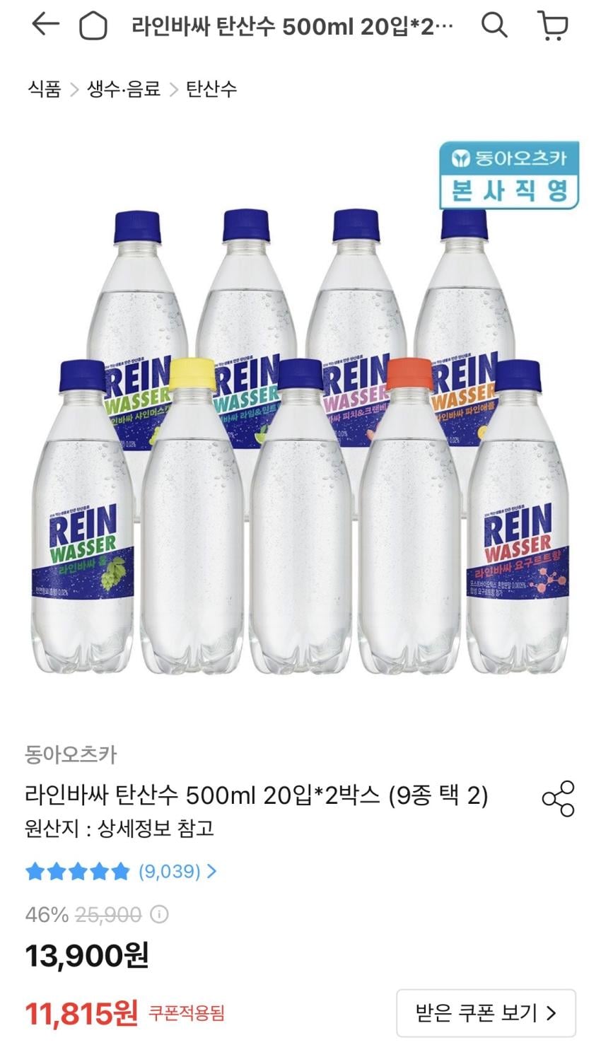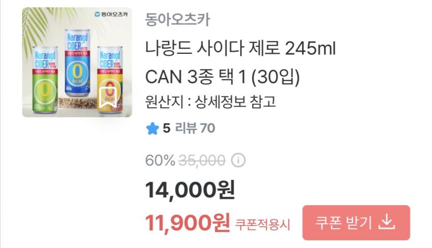 Nhấp vào sản phẩm mong muốn để nhận phiếu giảm giá Có sẵn Nước có ga Line Bassa 500ml 20+20 miếng (có thể pha) 11.815 won Narande Zero 245ml 30 miếng 11.900 won, v.v.