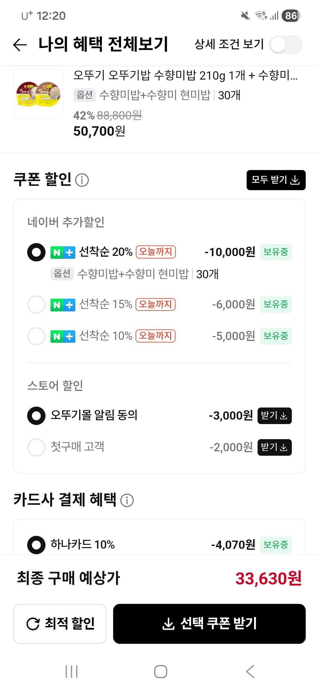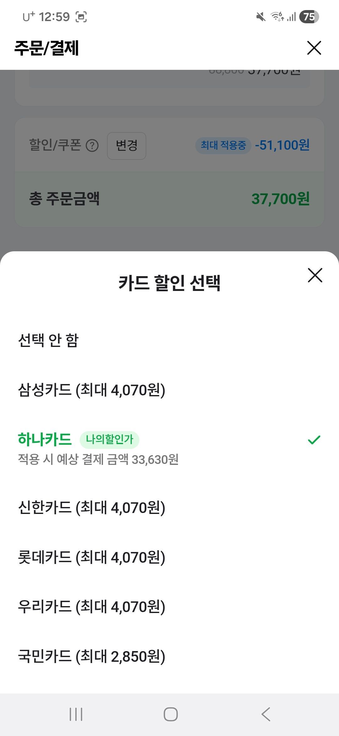 Khi bạn đi đến cửa sổ thanh toán, 37.700 won sẽ xuất hiện. Nhấp vào giảm giá thẻ bên dưới.