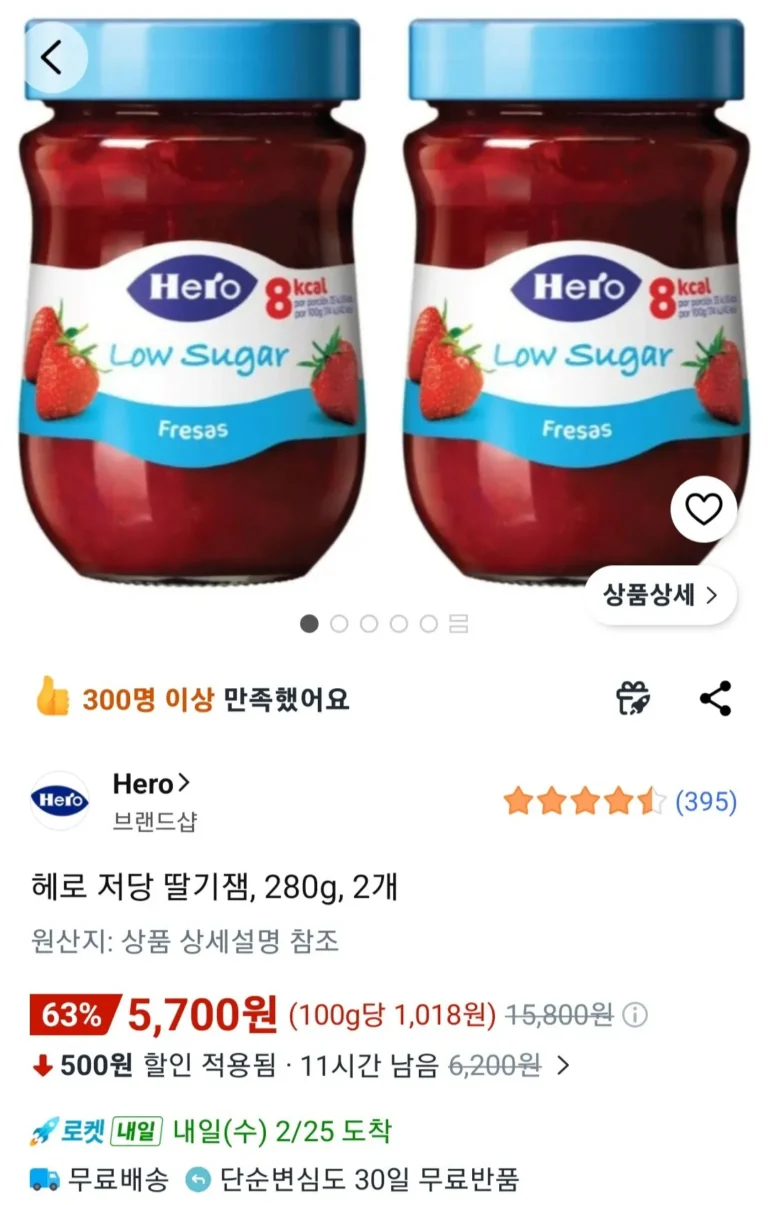 Mứt dâu ít đường Hero, 280g, 2 miếng