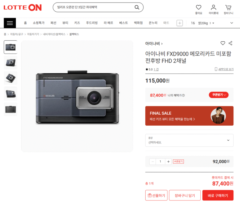 [Lotte On] iNavi FXD9000 Mặt trước và mặt sau FHD 2 kênh không cần thẻ nhớ