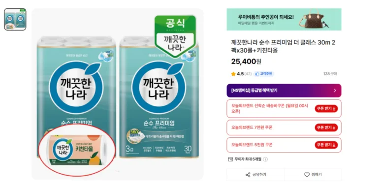 Clean Nara Pure Premium Lớp 30m 2 gói x 30 cuộn + khăn lau bếp