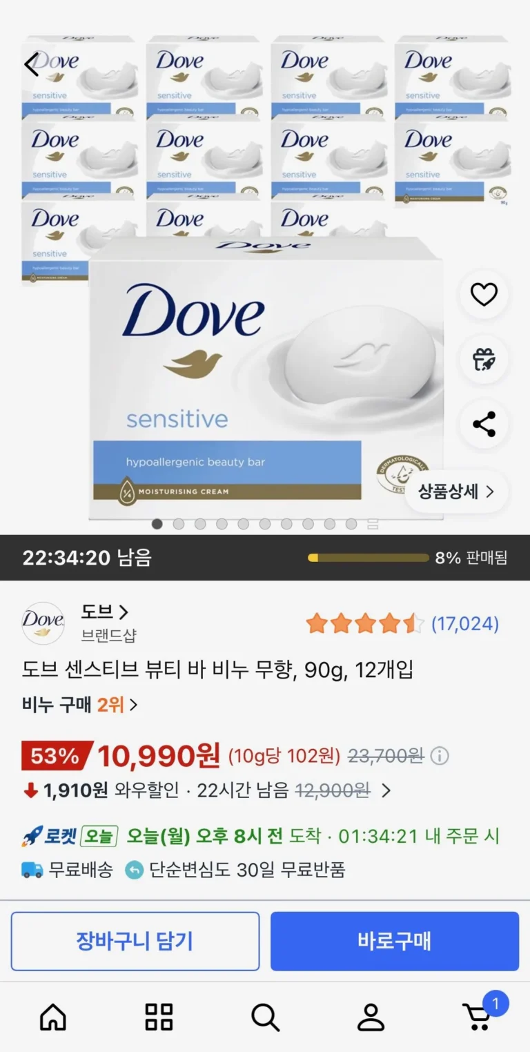 Xà phòng Dove Sensitive Beauty Bar không mùi, 90g, 12 gói