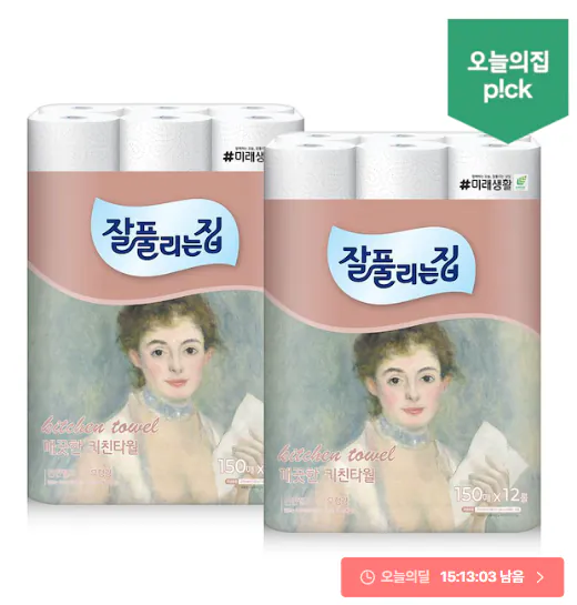 Khăn Nhà Bếp Hôm Nay, 150 tờ, 12 cuộn * 2 gói (tổng cộng 24 cuộn)