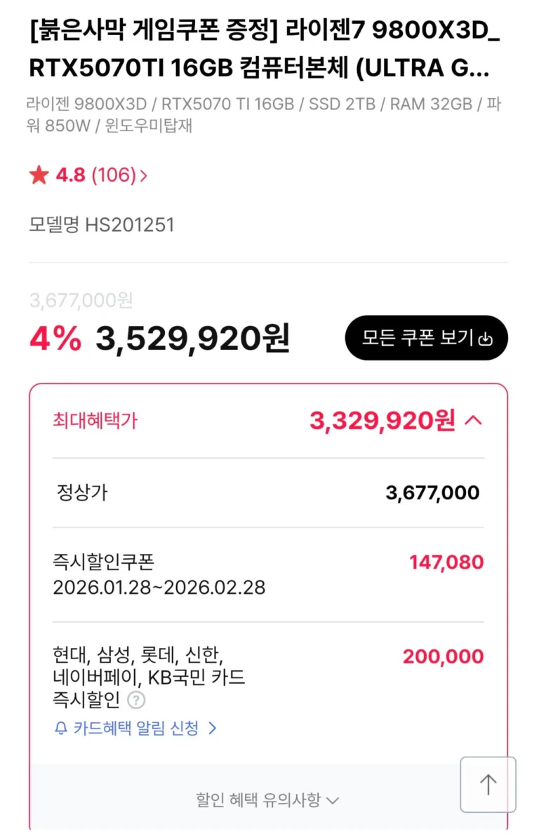 [Toàn thân] 9800X3D + 5070Ti + D5 32GB + 2TB (TLC, DRAM o)