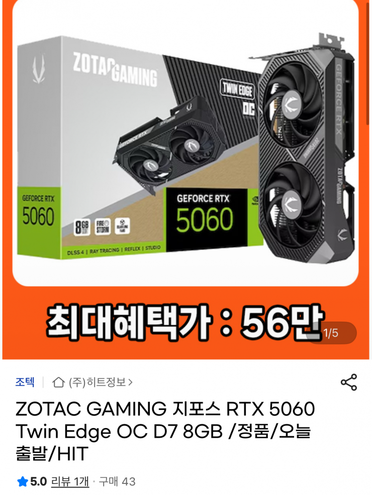 [GMarket] GeForce RTX 5060 Twin Edge OC D7 8GB