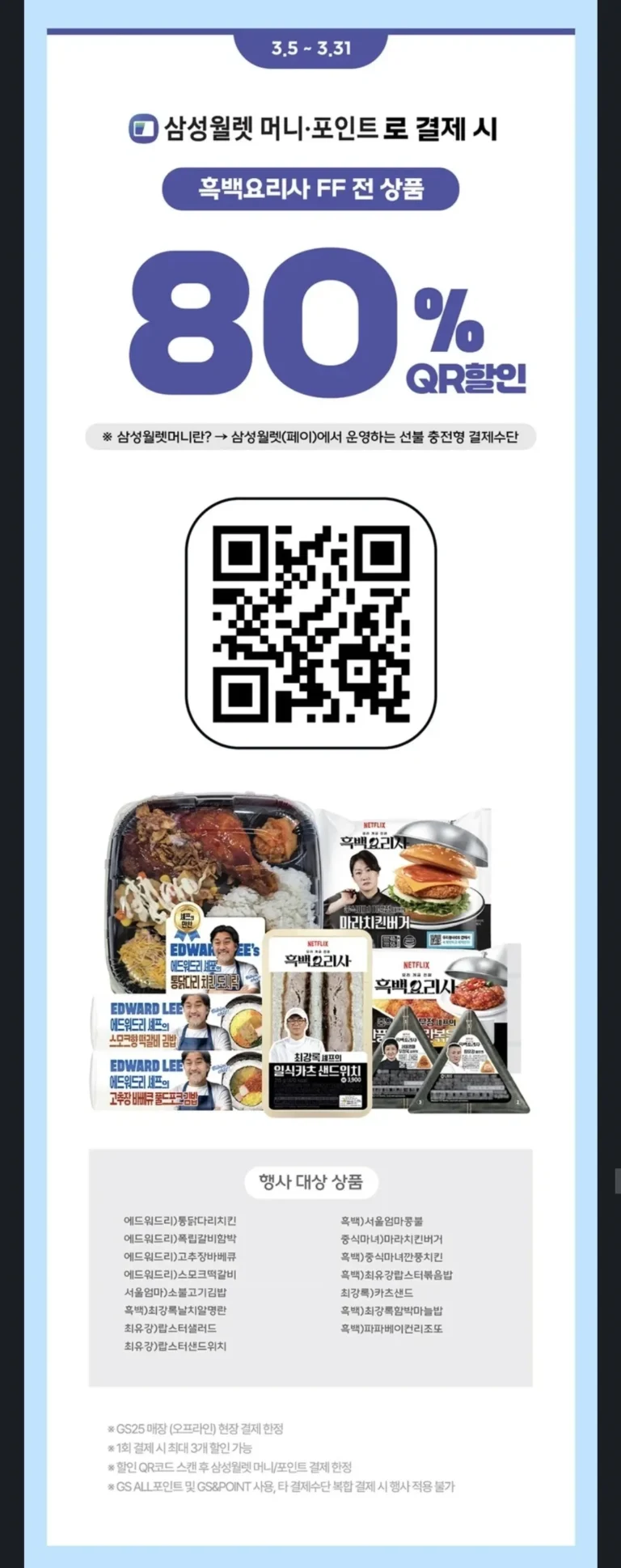 [Sửa đổi sự kiện/Cho đến ngày mai] Giảm giá 80% cho điểm Samsung Wallet đầu bếp đen trắng GS25