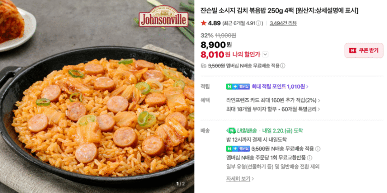 Cơm chiên kim chi xúc xích Johnsonville 250g 4 gói