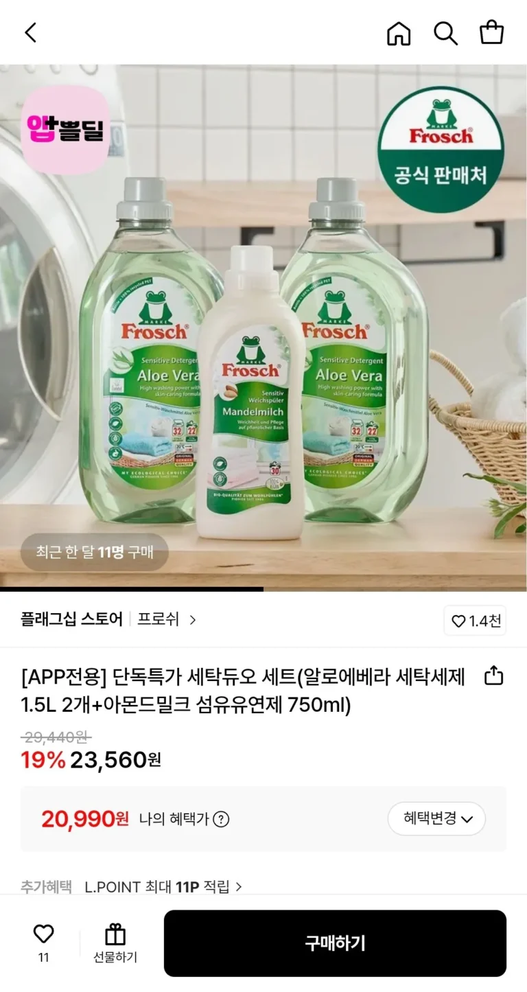 Bộ giặt đôi Frosh (2 nước giặt lô hội 1.5L + nước xả vải sữa hạnh nhân 750ml) (thẻ)