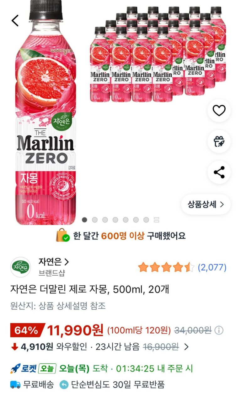 Nature’s Dermald Zero Bưởi, 500ml, 20 miếng