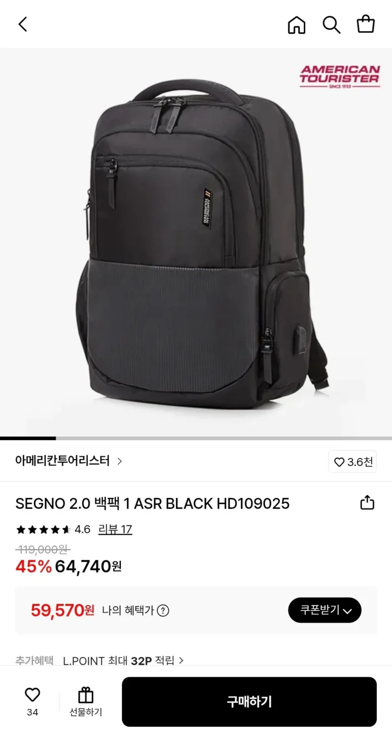 Balo American Tourister SEGNO 2.0 1 ASR BLACK HD109025 (Thẻ)