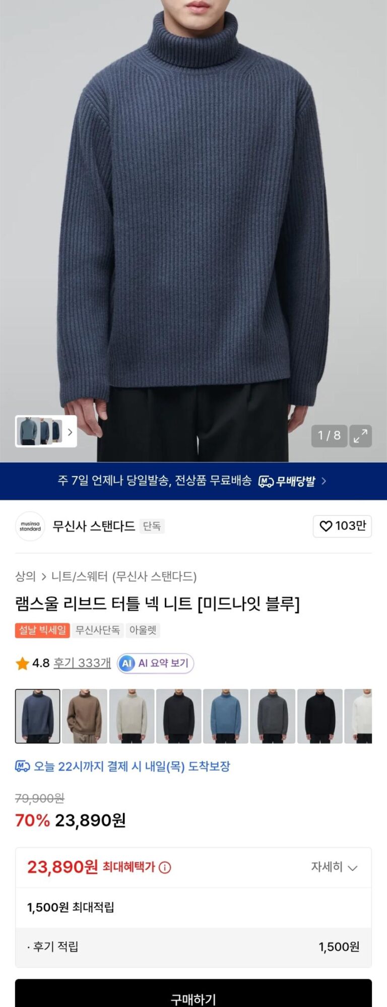 Áo len dệt kim cao cổ tiêu chuẩn Musinsa