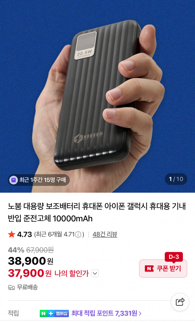 [Naver] Pin phụ dung lượng cao bán rắn 10000mAh