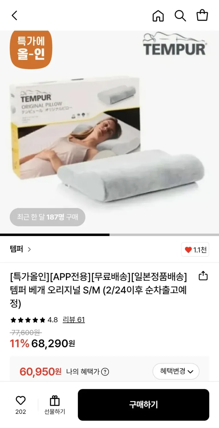 Gối Tempur Original S/M Phiên bản tiếng Nhật