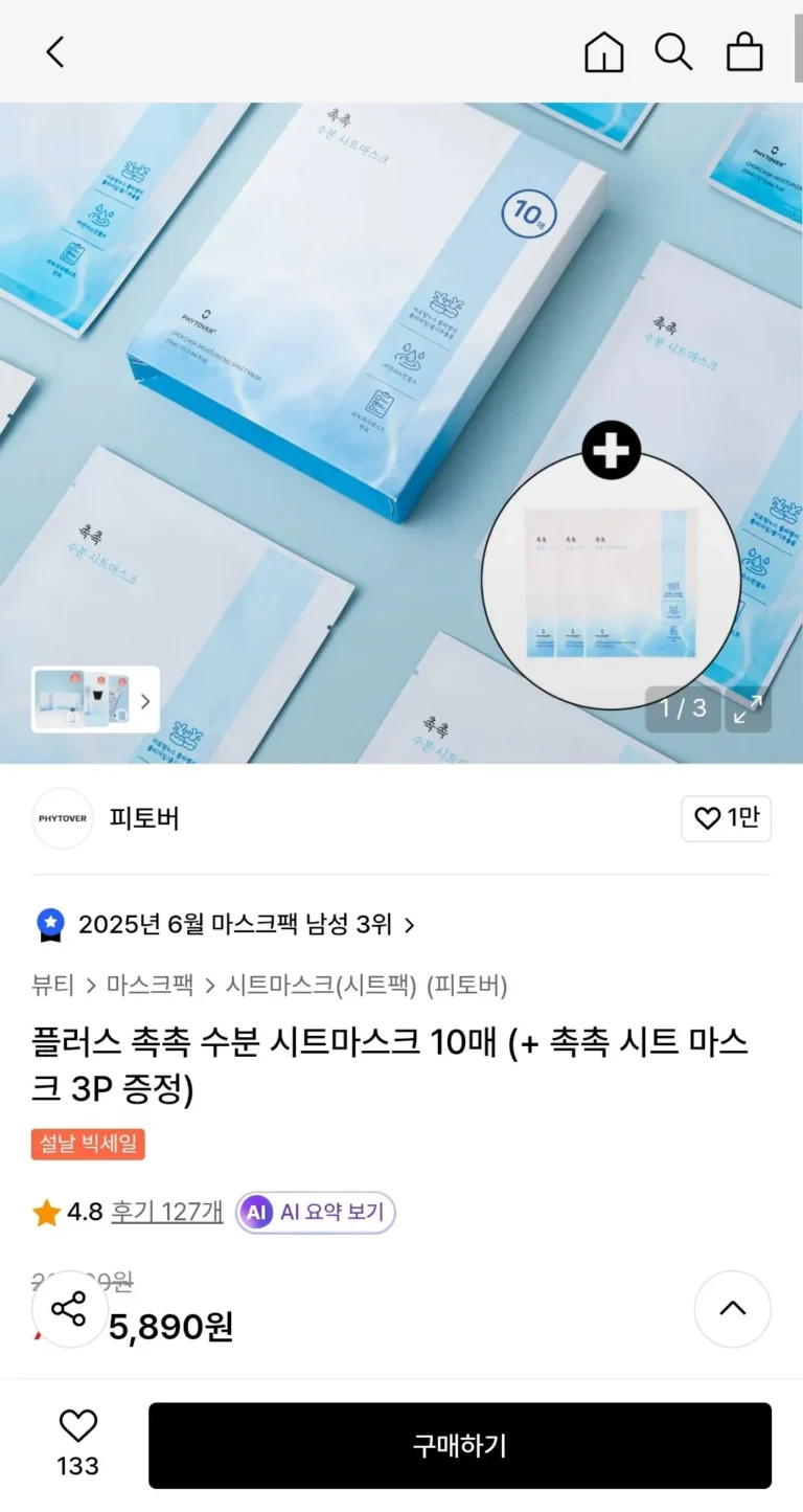 Mặt nạ giấy dưỡng ẩm Fitover Plus (10 tờ) (+ cung cấp 3 mặt nạ dưỡng ẩm)
