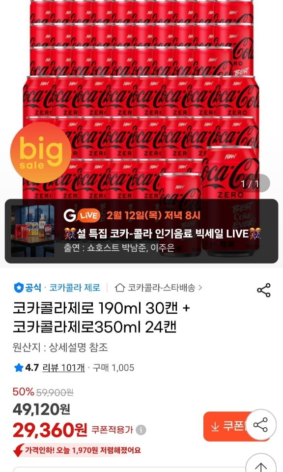 Coca-Cola Zero 190ml 30 lon + Coca-Cola Zero 350ml 24 lon