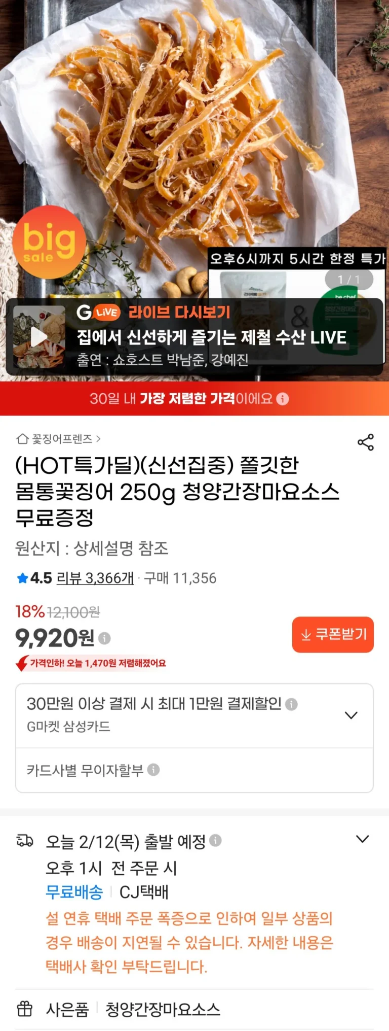 [Naver] Vua mực bán khô sản xuất ở biển cực lớn 850g 5 phần