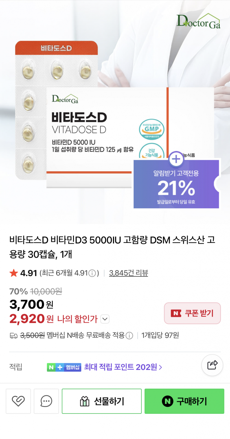 [Naver] Vitados D Vitamin D 5000IU (2.920 KRW/Nemem miễn phí vận chuyển)