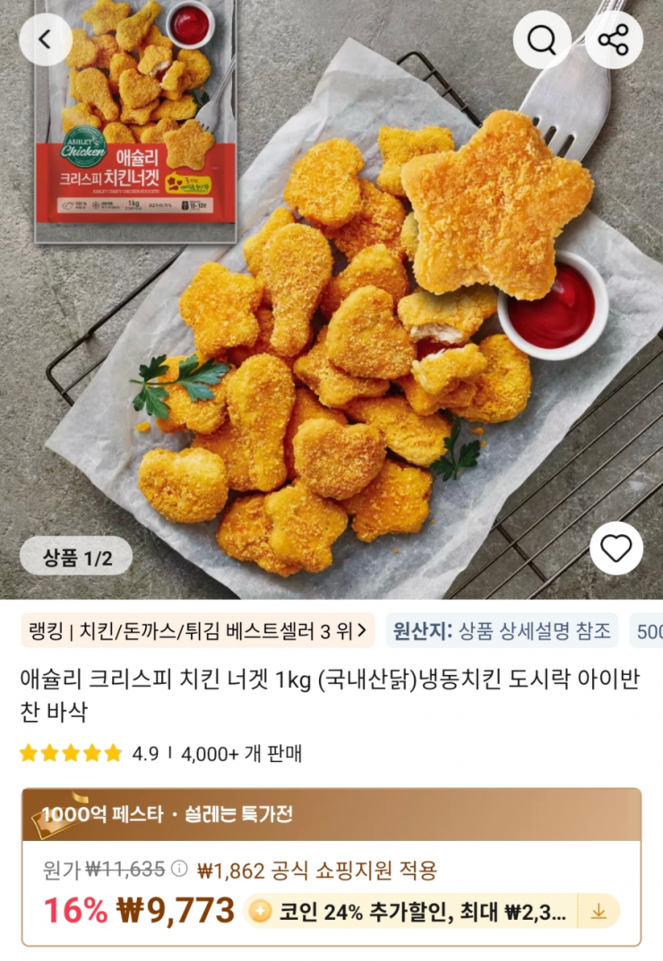 [Ali] Ashley Krispy Gà Viên 1kg Gà Nội Địa (Coin Deal)