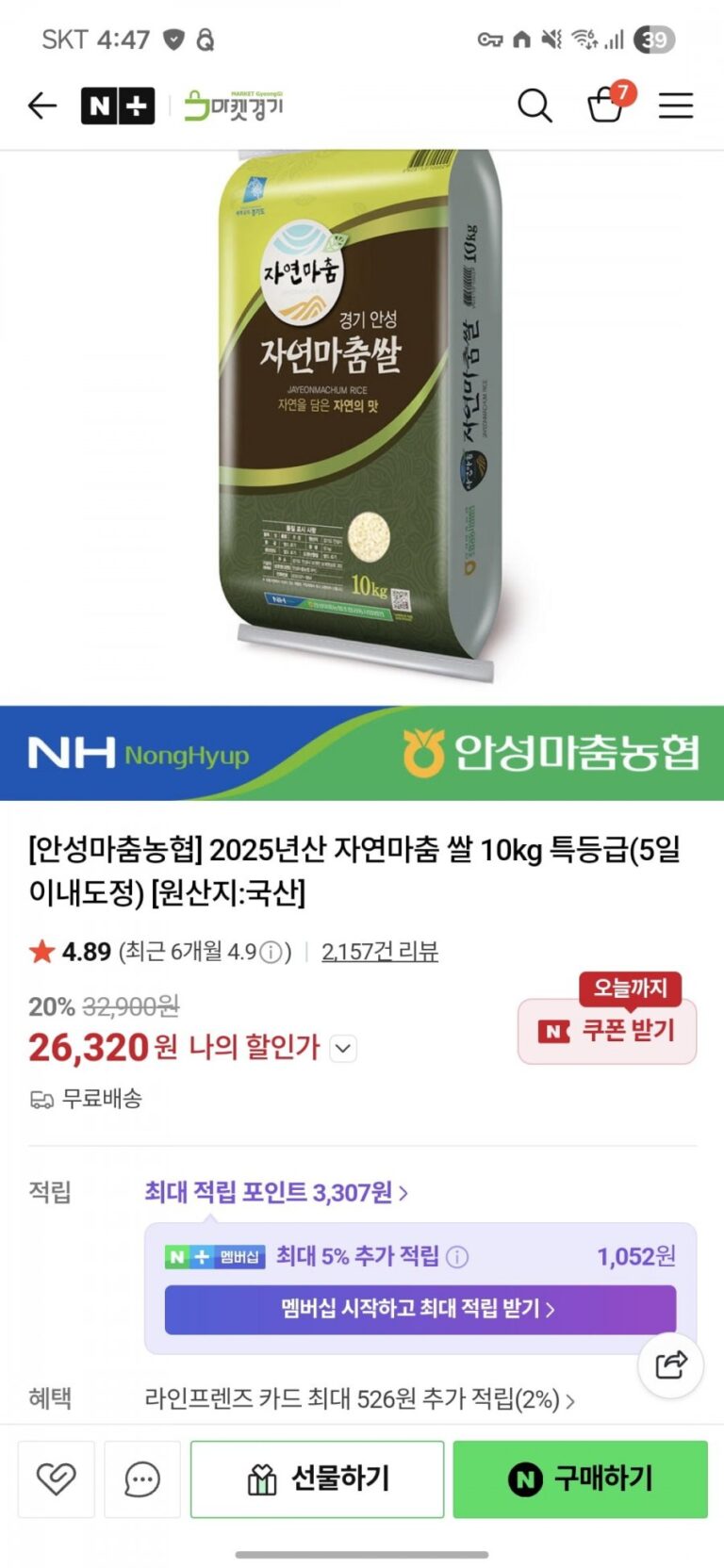 Gạo Matchum tự nhiên Anseong Matchum Nonghyup 10kg