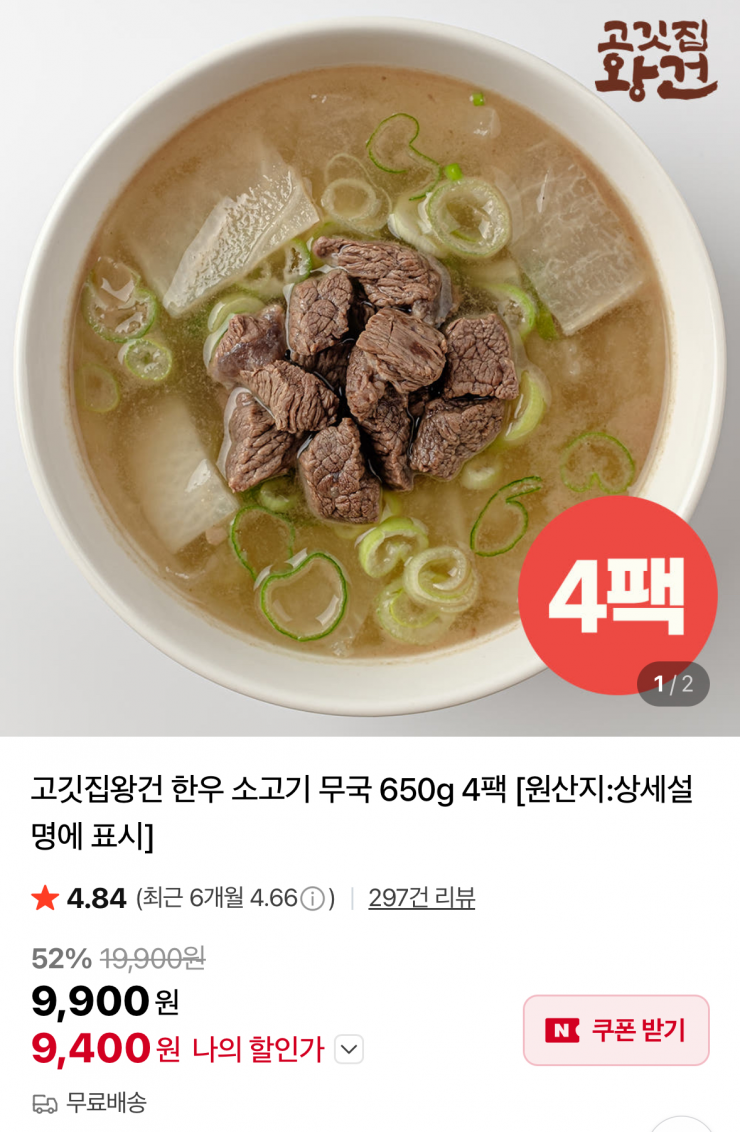 [Naver] Gogijip Wanggeon Súp củ cải thịt bò Hàn Quốc 650g 4 gói