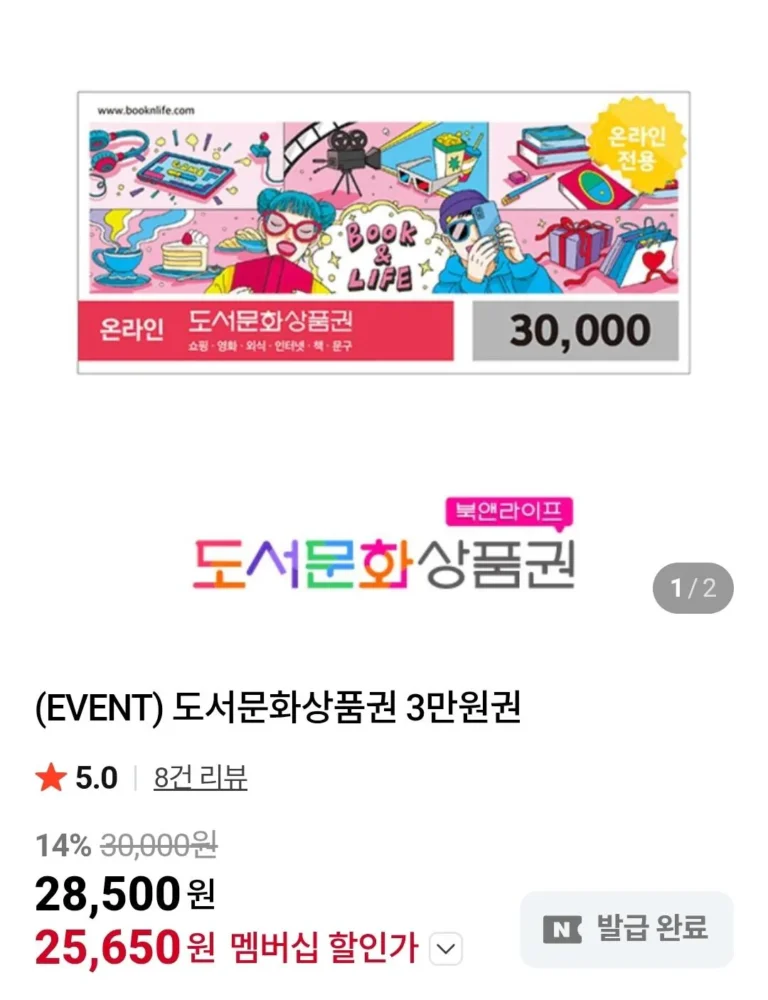 Sách & Cuộc sống Giấy chứng nhận quà tặng sách và văn hóa 30.000 won