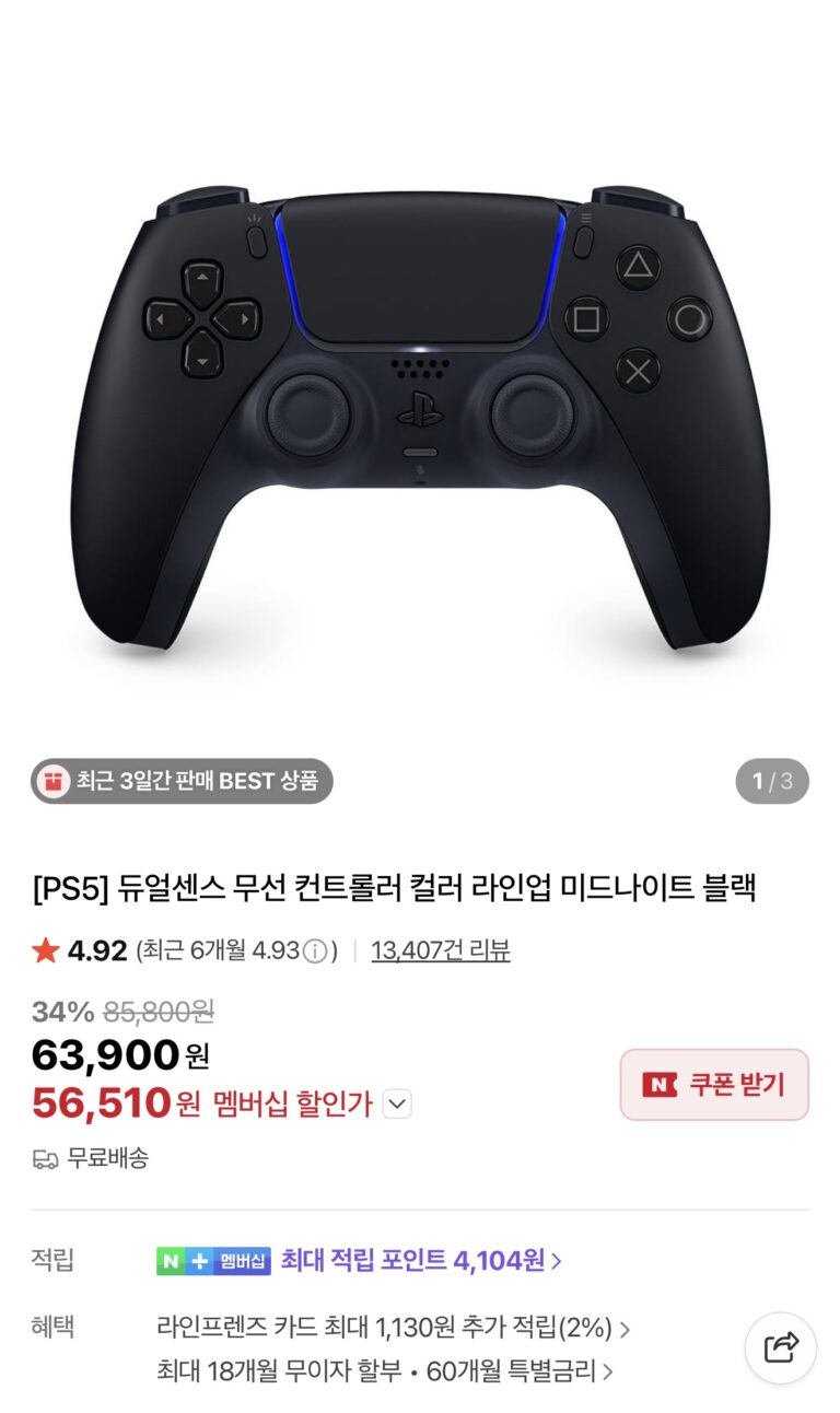 [Naver] Bộ điều khiển không dây PS5 DualSense, tất cả các màu ngoại trừ màu đen nửa đêm (53.000 lượt hiển thị)