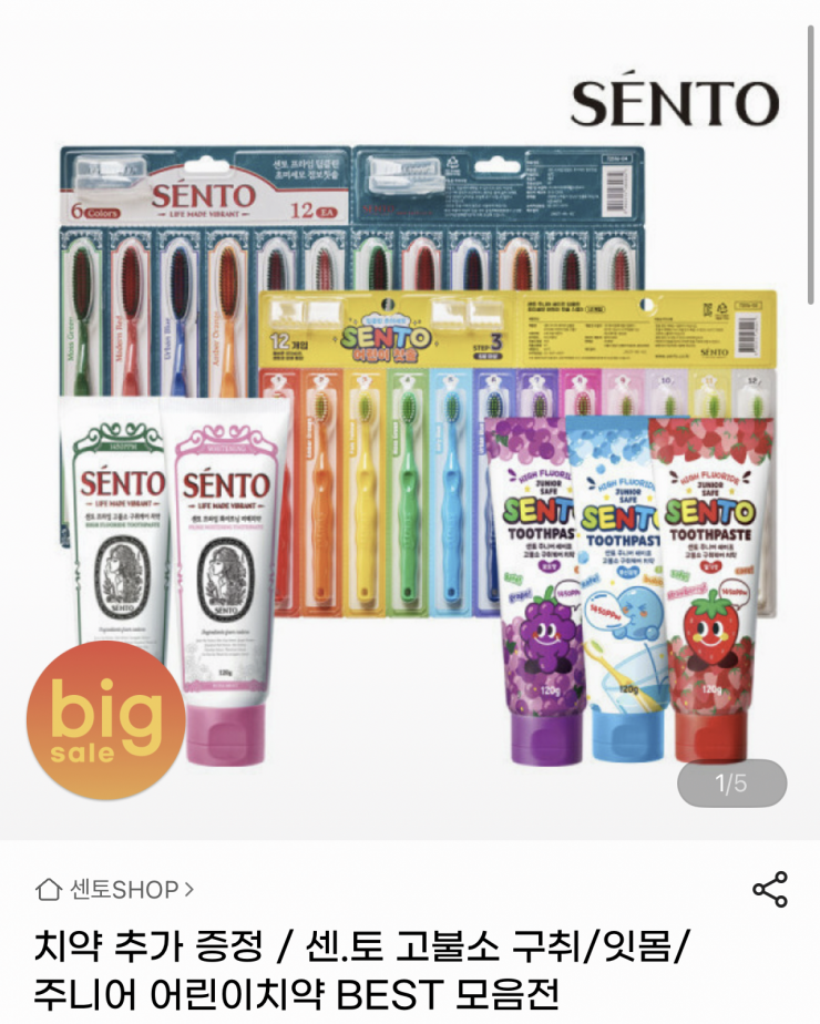 [G Market] Kem đánh răng Sento 4+1 / 8+2 (9.910 KRW/Miễn phí)