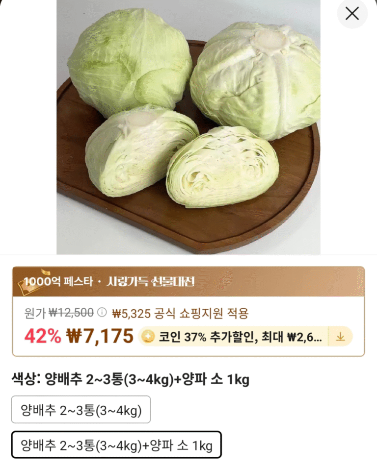 [Ali] 2~3 lon bắp cải gọt vỏ từ Muan, Jeolla-do 3~4kg + 1kg hành tây (Coin Deal)