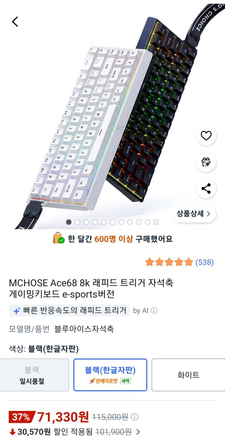 [Coupang] Bàn phím chơi game trục từ tính kích hoạt nhanh MCHOSE Ace68 8k phiên bản thể thao điện tử