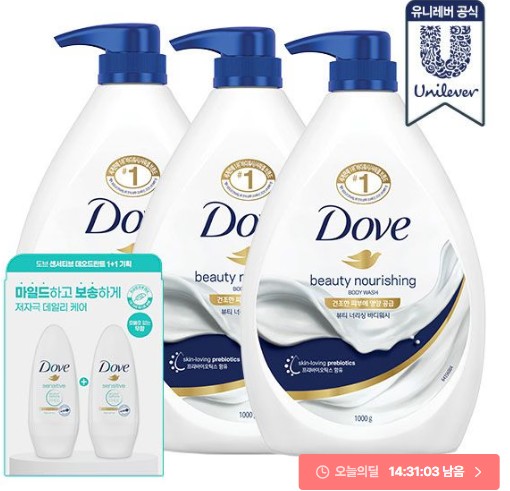 Sữa tắm Dove 3 1L + 2 lăn