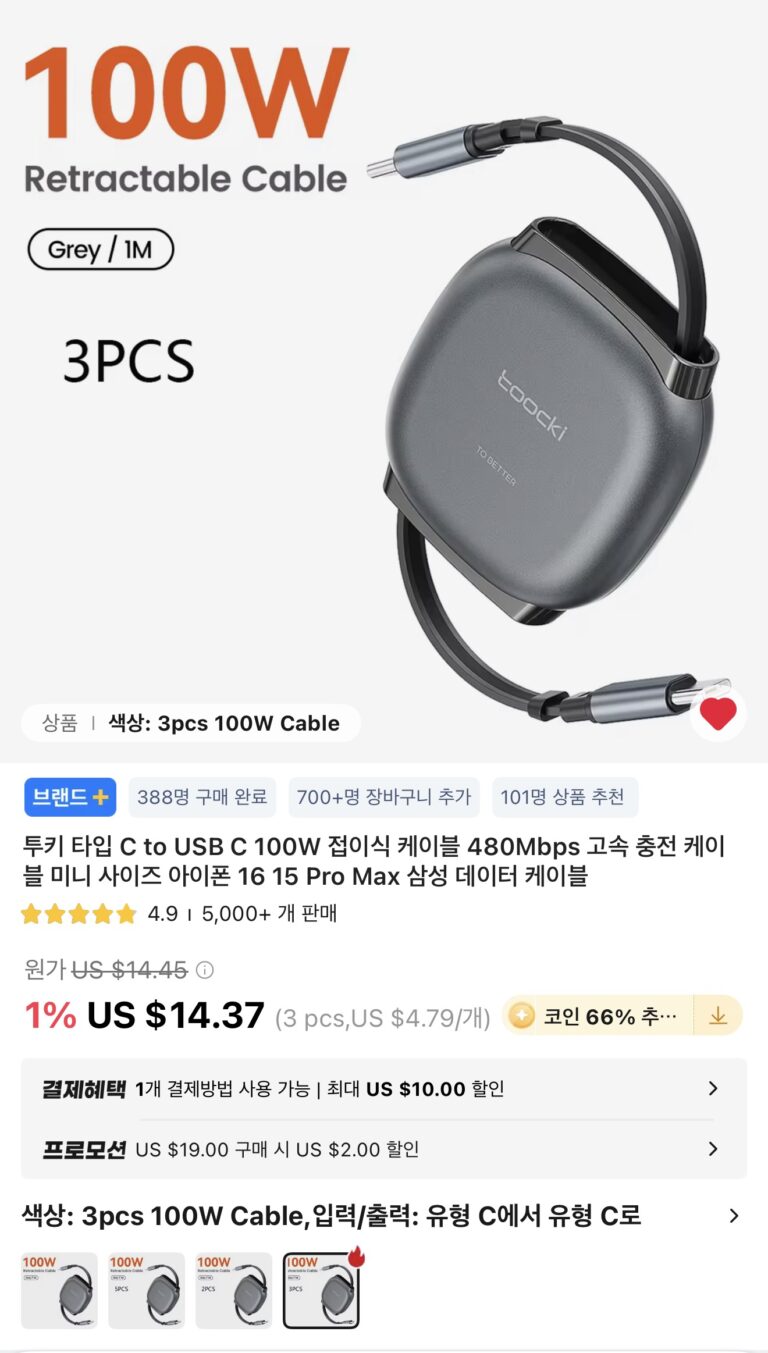 [Ali] Cáp cuộn Toocki C đến C 100W 3 chiếc (Giao dịch xu)