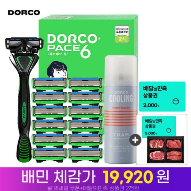 Bộ dao cạo Dorco Face 6 đầy đủ (Bọt + Thân + 13 lưỡi + Baemin)