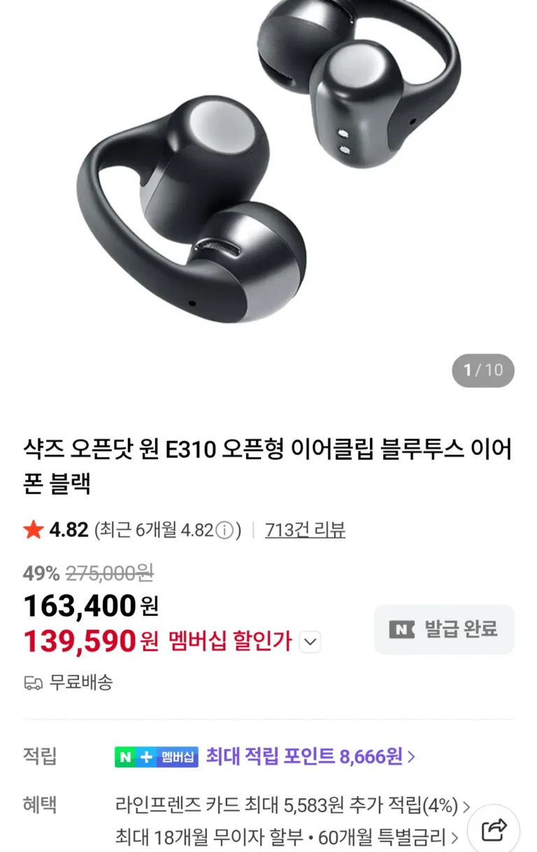 Sharks OpenDot One E310 Kẹp tai mở Tai nghe Bluetooth Tư cách thành viên Naver