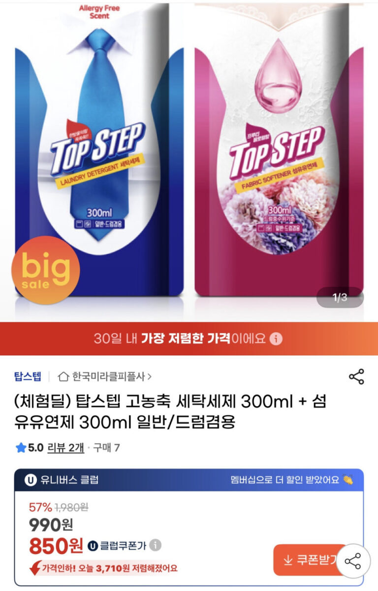 Nước giặt đậm đặc Topstep 300ml + nước xả vải 300ml