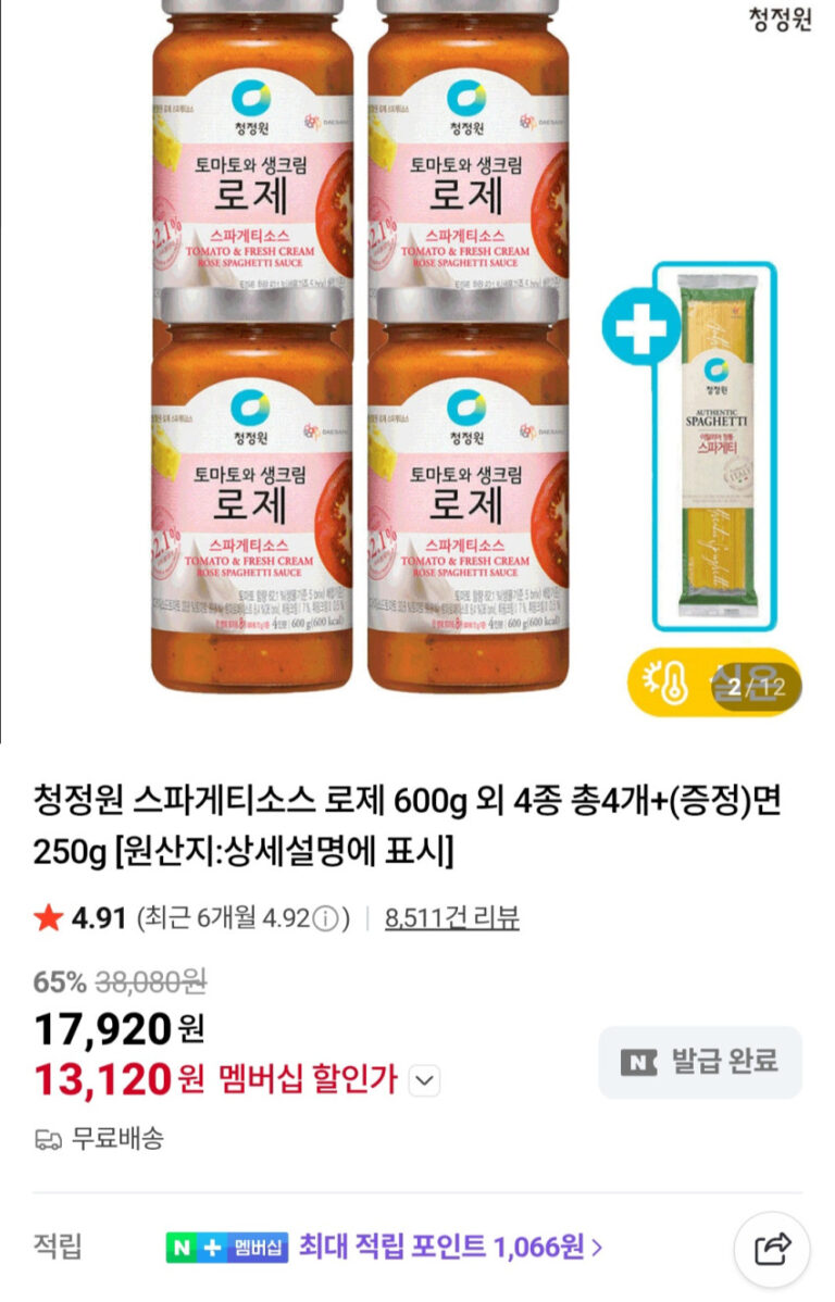 Sốt Spaghetti Chungjungone Rose 600g và 4 loại nữa + 250g mì