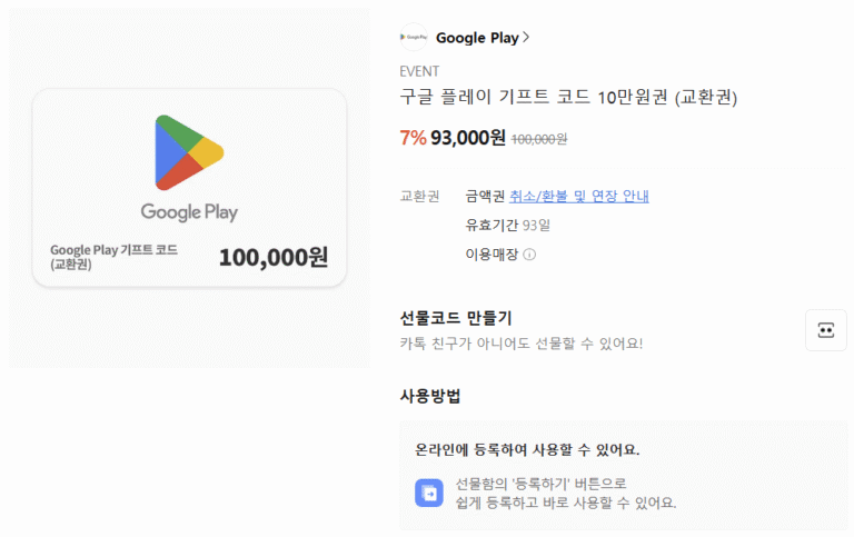 [Khác] Mã quà tặng Google Play giảm giá 7%, phiếu mua hàng 100.000 won, v.v.