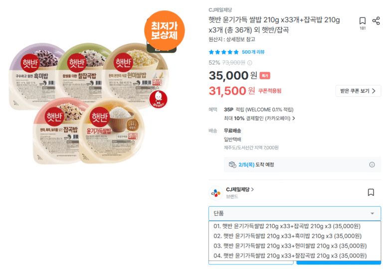 [Loại khác] Gạo bóng Hetbahn 210g x 33 miếng + gạo trộn 210g x 3 miếng (tổng cộng 36 miếng)