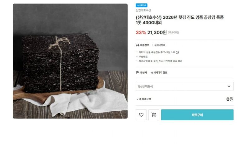 2026 Haetkim Jindo rong biển cao cấp sản phẩm đặc biệt 1 tot khoảng 430G