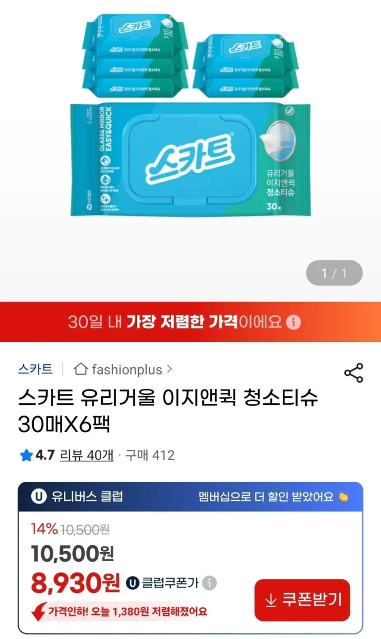Khăn giấy lau gương dễ dàng và nhanh chóng 30 tờ x 6 gói