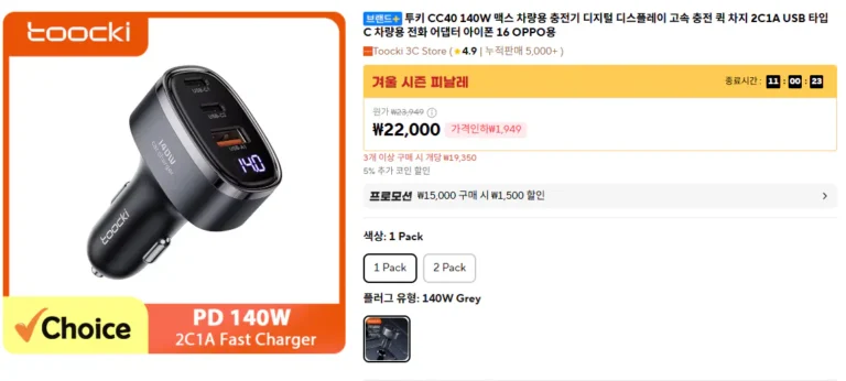 Sạc xe hơi Tukey CC40 140W Max 3 cổng