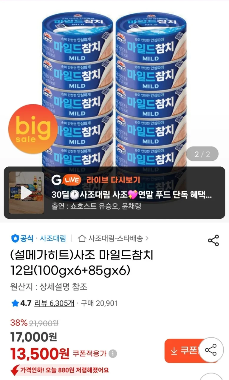 Cá Ngừ Sajo Mild 12 miếng (100gx6+85gx6)
