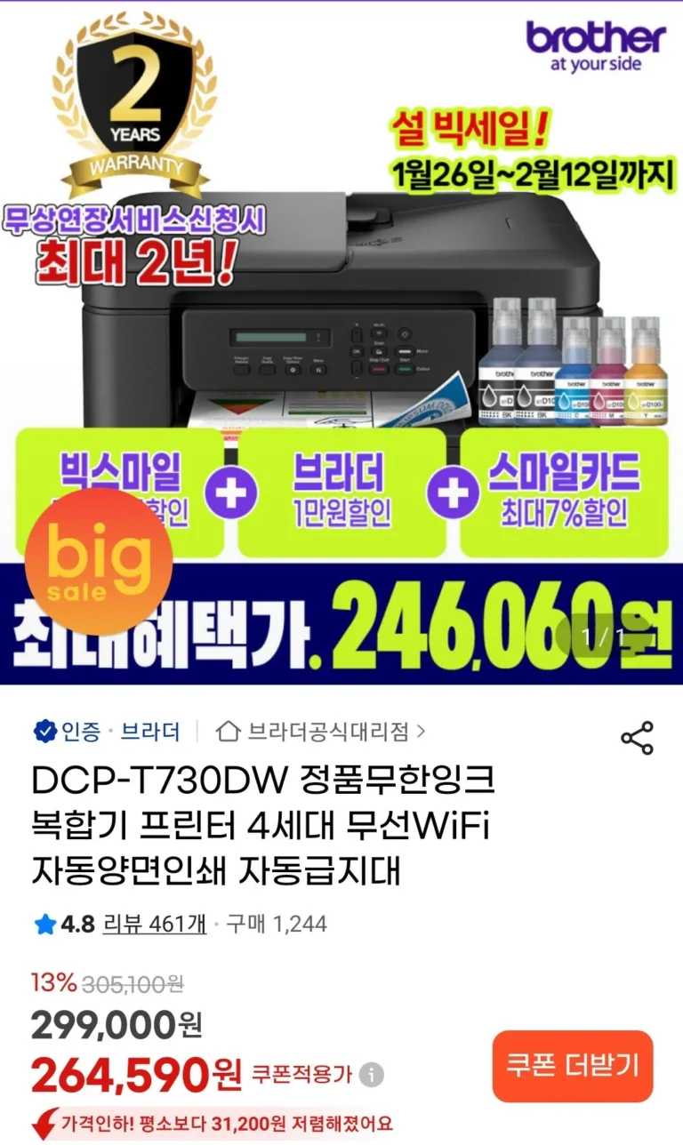 Máy in đa năng Brother DCP-T730DW chính hãng Infinite Ink All-in-One Smile Card thế hệ thứ 4