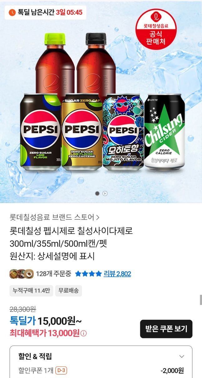 Lotte Official Pepsi Zero Sugar Lime Flavor 355ml x 48 lon (Chỉ Kakao Pay)