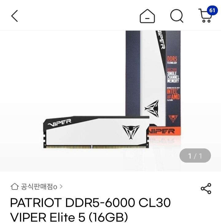 [Gmarket] PATRIOT DDR5-6000 CL30 VIPER Elite 5 (16GB)