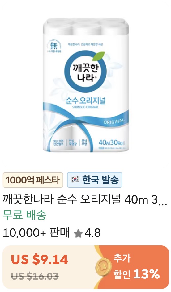 [Ali] Clean Country Pure Original 40m 30 cuộn 1 gói